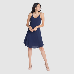 This sleeveless dress is flowy and has a criss cross detail on the back